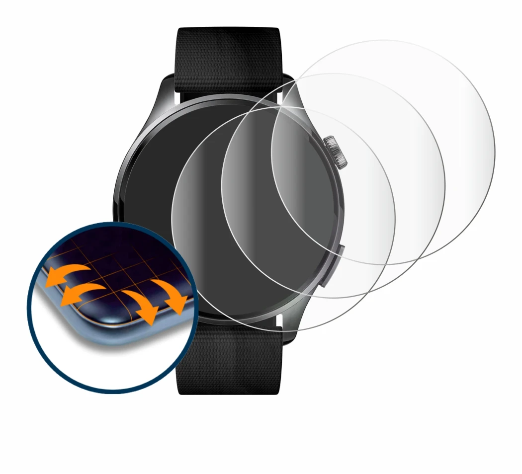 El protector de pantalla completa de Savvies se adapta perfectamente a tu dispositivo de bordes redondeados y protege de manera óptima tu Xiaomi Watch 5 (47 mm) contra rasguños y polvo.