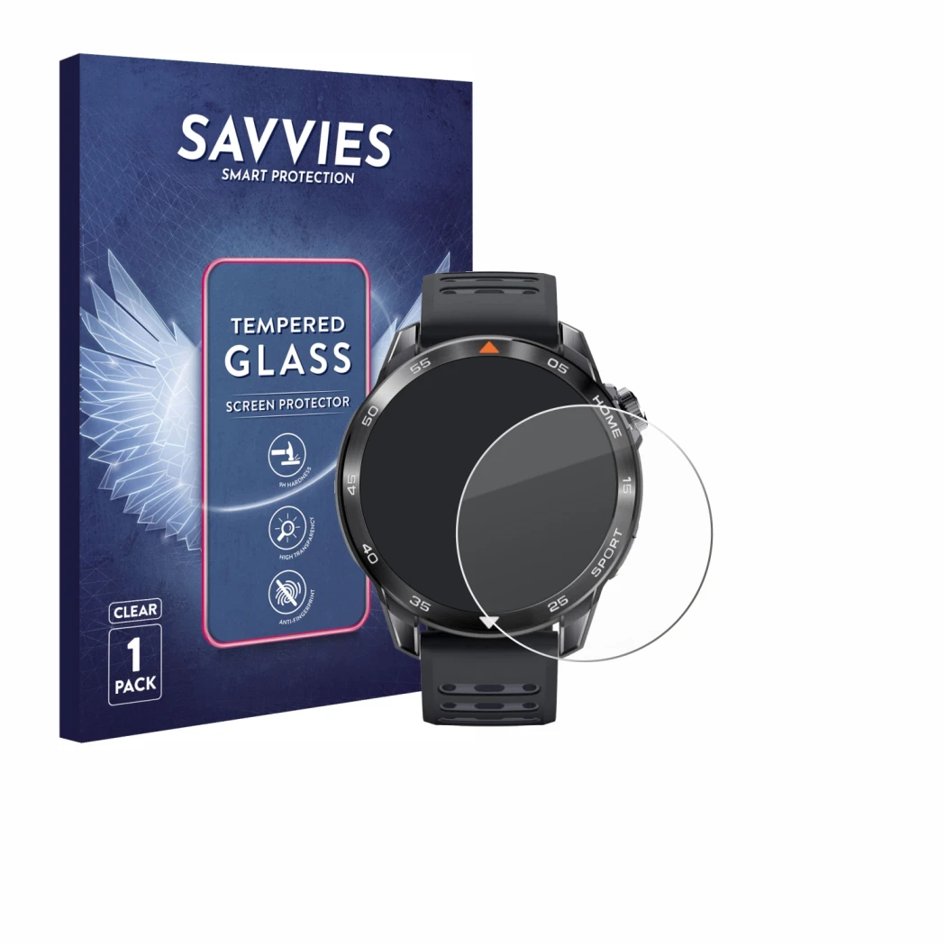 Savvies Xtreme Glass Clear Protector de pantalla de cristal templado compatible con Xiaomi Mibro GS Pro 2 (1x Pantalla), toallita de alcohol, paño de microfibra, cinta adhesiva para la eliminación de polvo, manual de instalación.